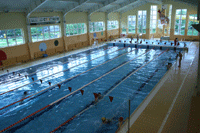 metra i głębokości od 1,55 do 2,20 m. Pojemność basenu wynosi 263 tysiące litrów. Znajduje się tu też sauna.