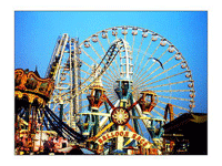 jest mnóstwo urządzeń rekreacyjnych takich jak karuzele, kolejki górskie, diabelski młyn, beczka śmiechu,